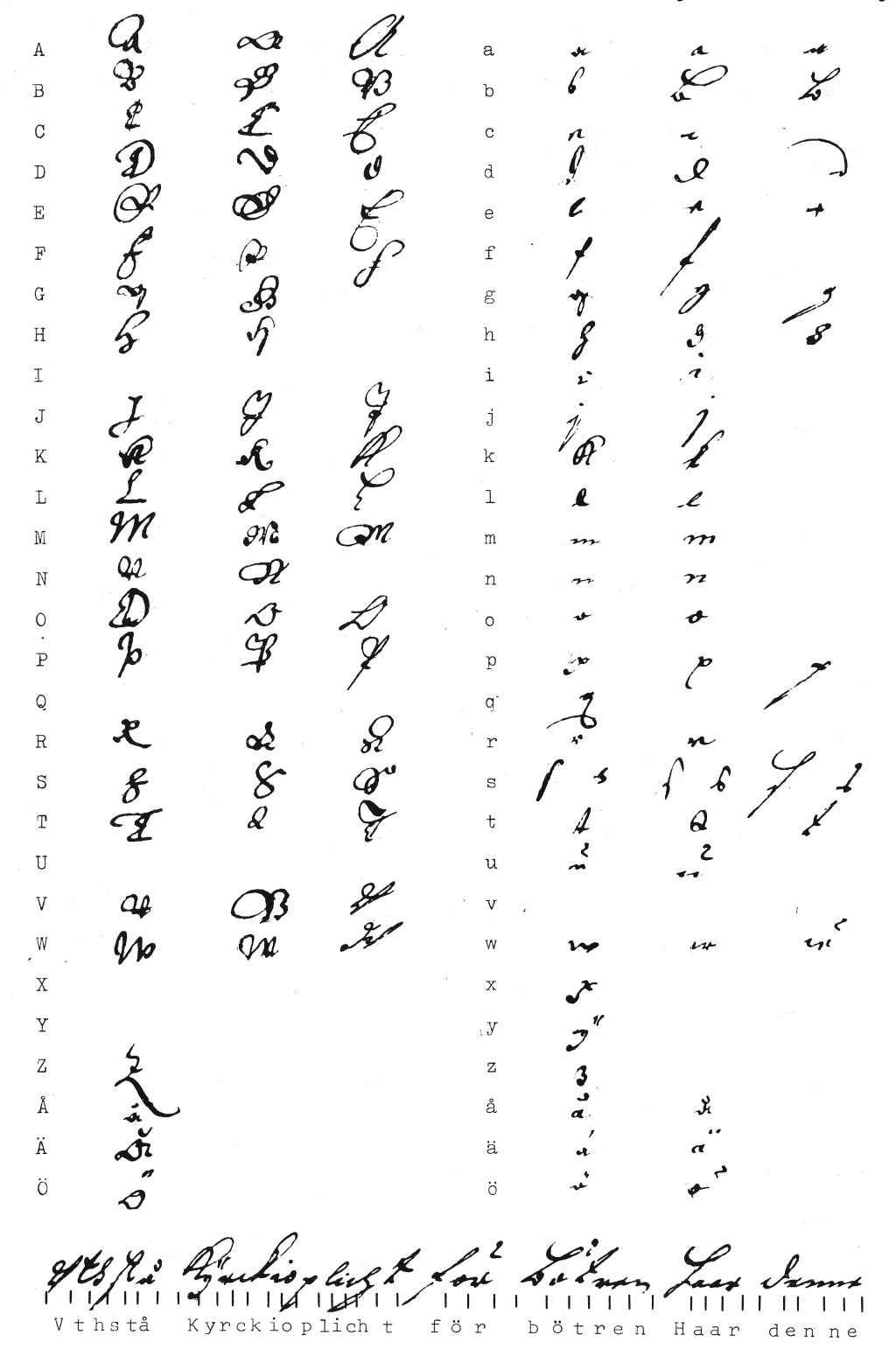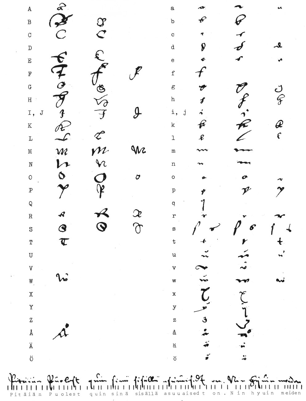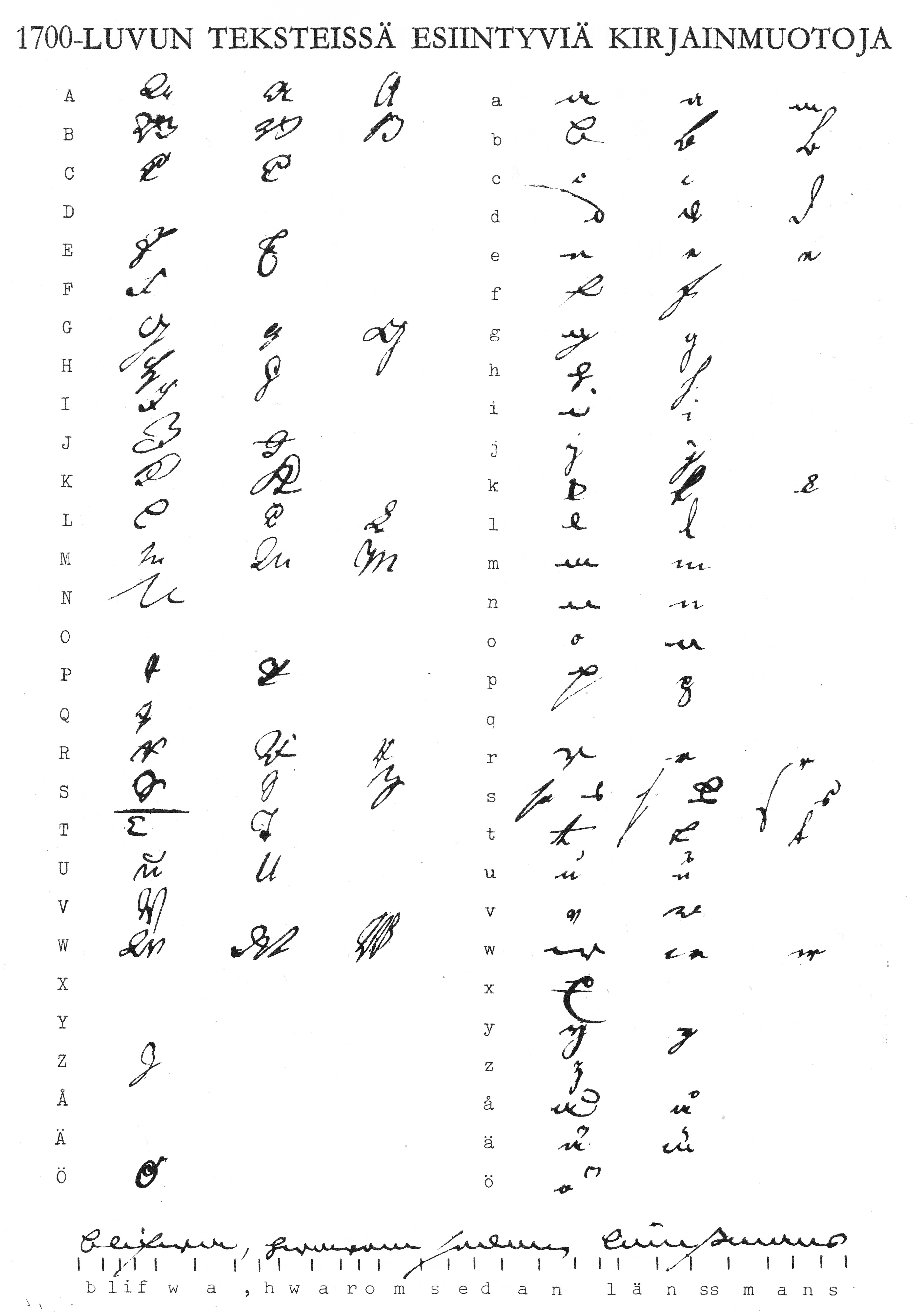 1700-luvun teksteissä esiintyviä kirjainmuotoja